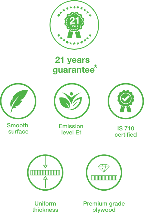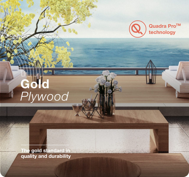 Greenpanel Gold Plywood is the new gold standard in the plywood category that sets the highest benchmarks and comes with 21 years warranty. It is fully waterproof and specifically designed for applications subject to permanent exposure to the weather or moisture. With proven performance, durability and excellent dimensional stability, It is a premium marine grade plywood with excellent dimensional stability, can withstand continuous frequent shift of dry and wet conditions, and is best suited for applications demanding high strength and rigidity.