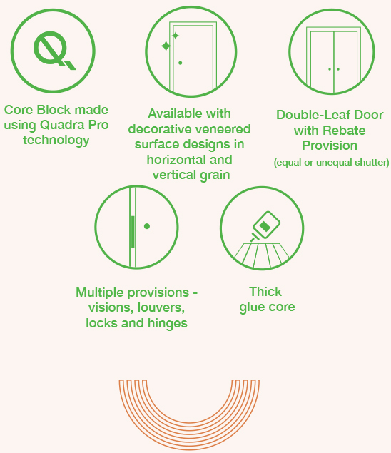 Greenpanel Laminated Doors are available in 30 vibrant designs, including solid colours. They are scratch-free and easy to maintain.