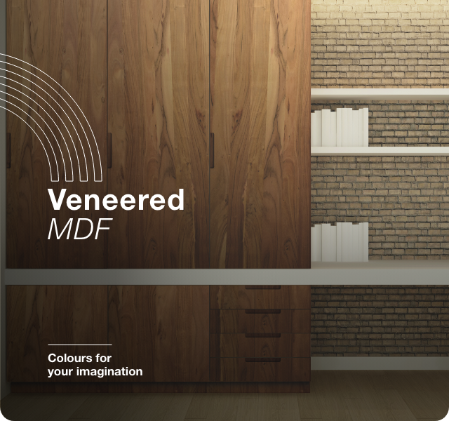 Greenpanel Veneered MDF, a revolutionary natural beauty to behold – perfect for your home creativity. It is a natural wood product, exhibiting nature’s real wood art in form of natural veneer and versatility of MDF. Each piece is branded with a unique structure, shading variations, knots inclusions and grains. It is as pristine as it is technologically advanced.